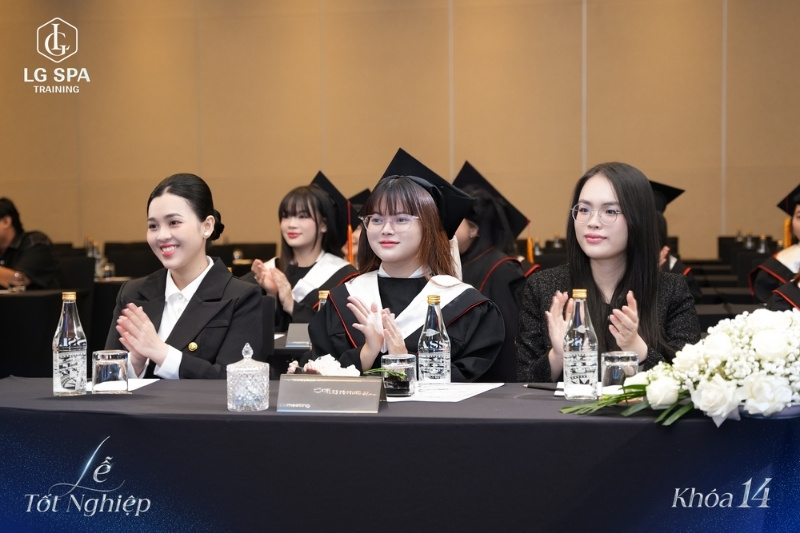 Trong không khí trang trọng nhưng đầy cảm xúc, lễ tốt nghiệp khóa K14 khép lại với những nụ cười rạng rỡ, những cái ôm lưu luyến và cả những giọt nước mắt hạnh phúc. Đó là khoảnh khắc các học viên tạm biệt ngôi nhà chung LG Spa Training Center để bắt đầu hành trình mới – hành trình của những chuyên viên spa thẩm mỹ vững tay nghề, tự tin và sẵn sàng chinh phục sự nghiệp.